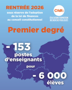 Le Comité Social d’Administration ministériel qui traitait de la rentrée 2026 s’est tenu hier. Il a validé la suppression de 4000 postes d’enseignants prévue dans la loi de finances, qui doit encore être examinée par le conseil constitutionnel.