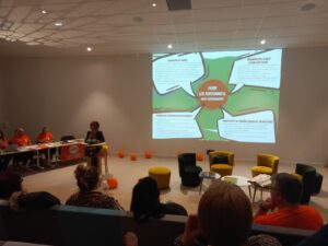 Le vendredi matin, Cristina Popescu, enseignante à l’université de Bielefeld (Allemagne) et membre du Cercle de Recherche et d’Action Pédagogique, nous a fait une présentation captivante sur les enjeux autour de l’intelligence artificielle, en particulier pour nos métiers et nos élèves, qui a donné lieu à de passionnants échanges.