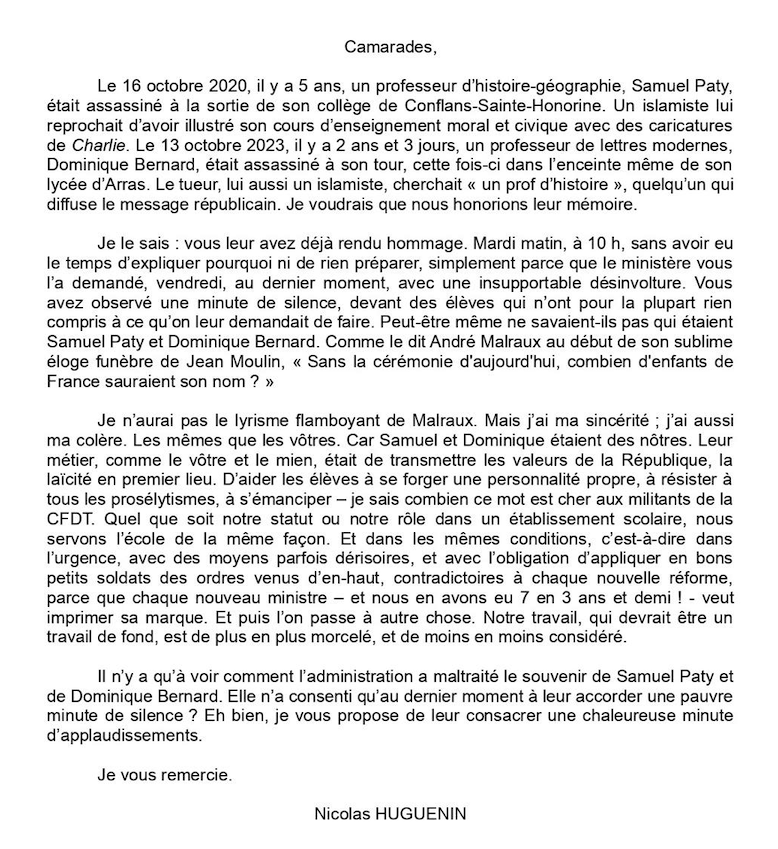 Jeudi, jour du cinquième anniversaire de l’assassinat de Samuel Paty, Nicolas nous a permis de lui rendre, ainsi qu’à Dominique Bernard, un vibrant hommage (tu peux retrouver son texte ici).